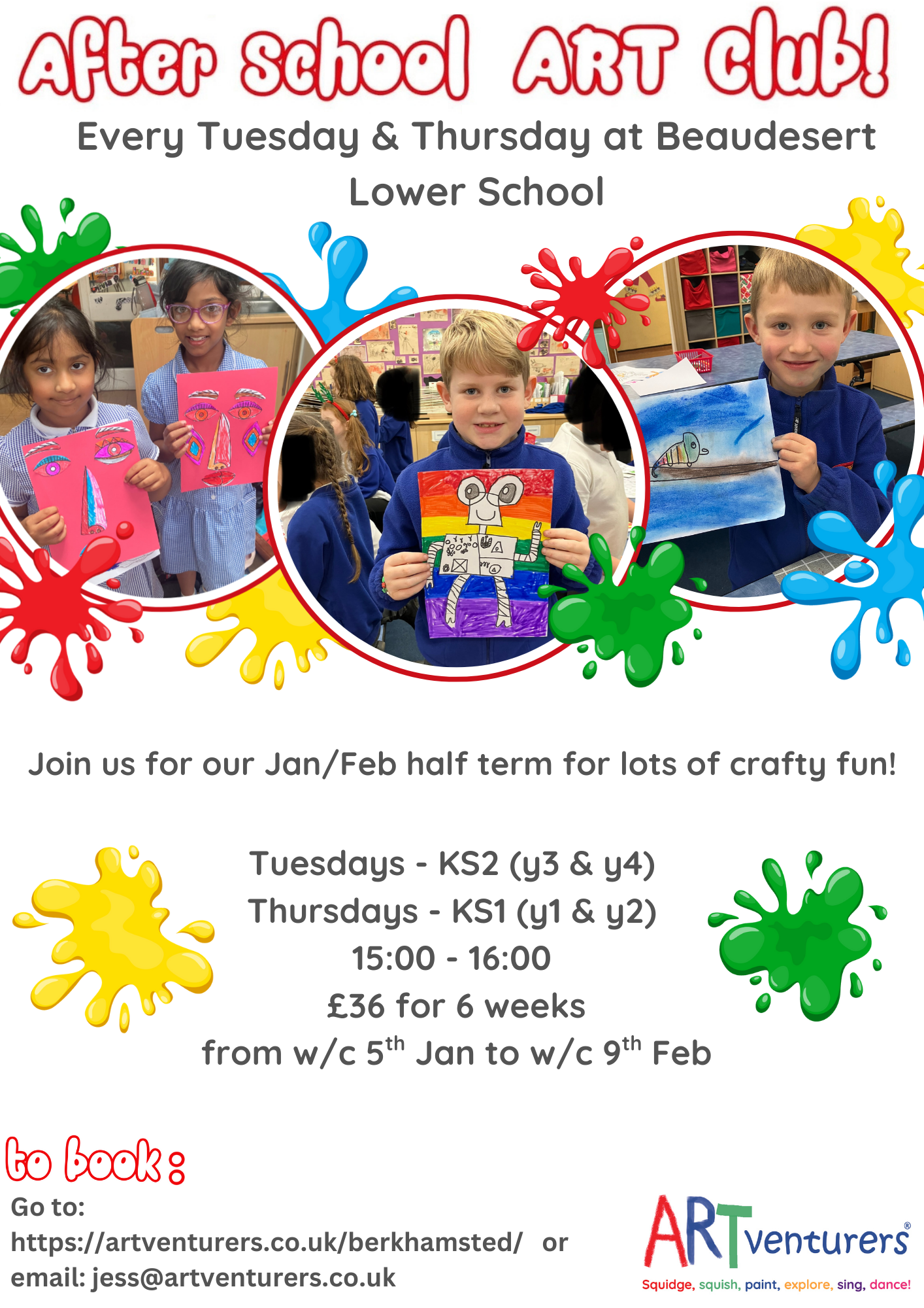 After School Art Club are now taking bookings for this half term. Please click on the link below to book your place.